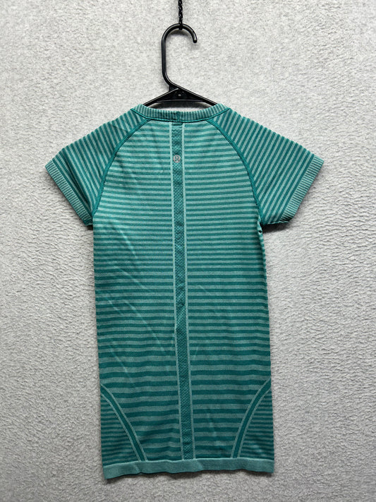 Lululemon Swiftly Tech Short Sleeve Crew Size 2 Heathered Forage Teal Striped