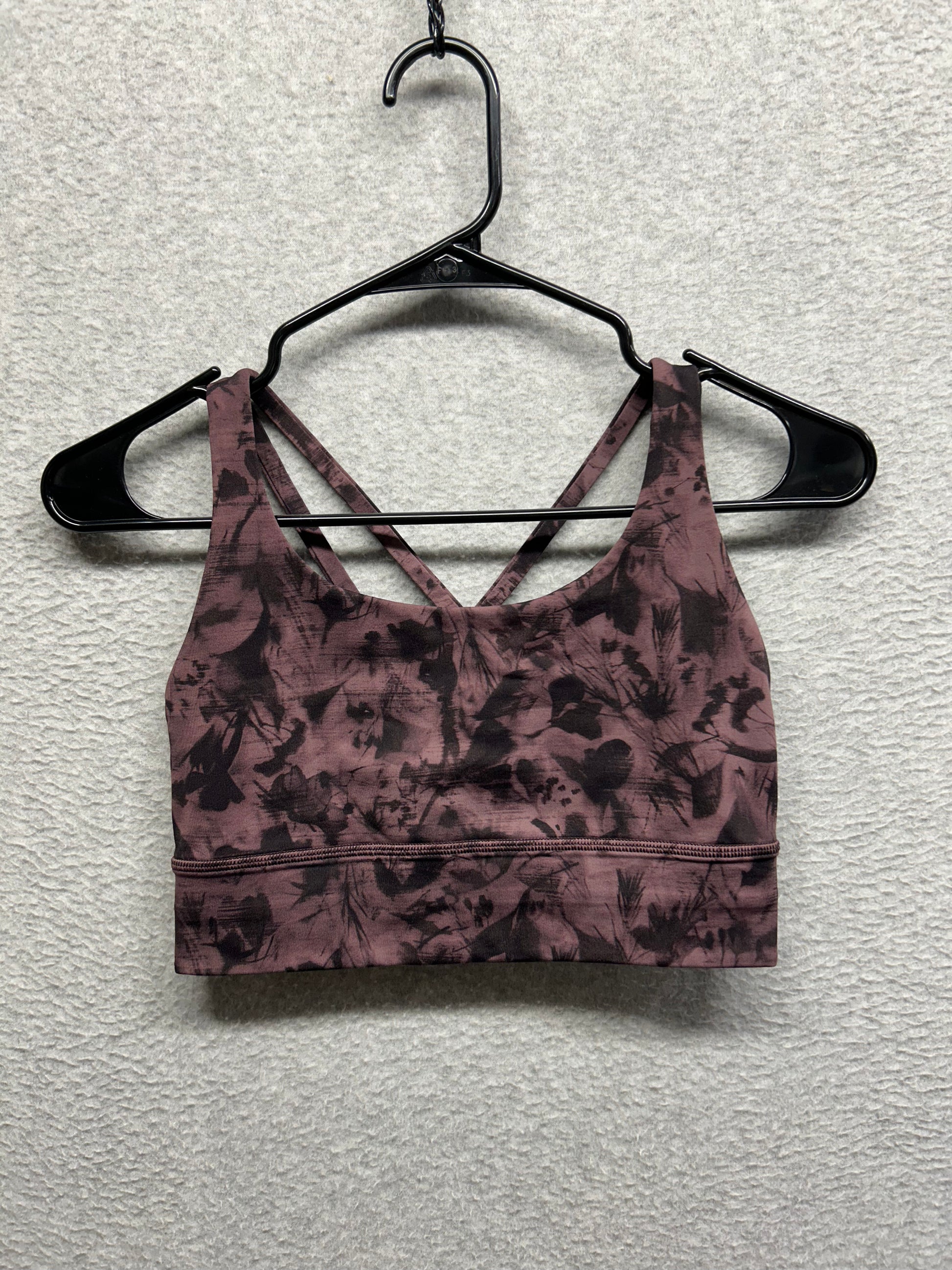 Lululemon Energy Bra Long Line Size 6 Mini Dusk Floral Antique Bark Black
