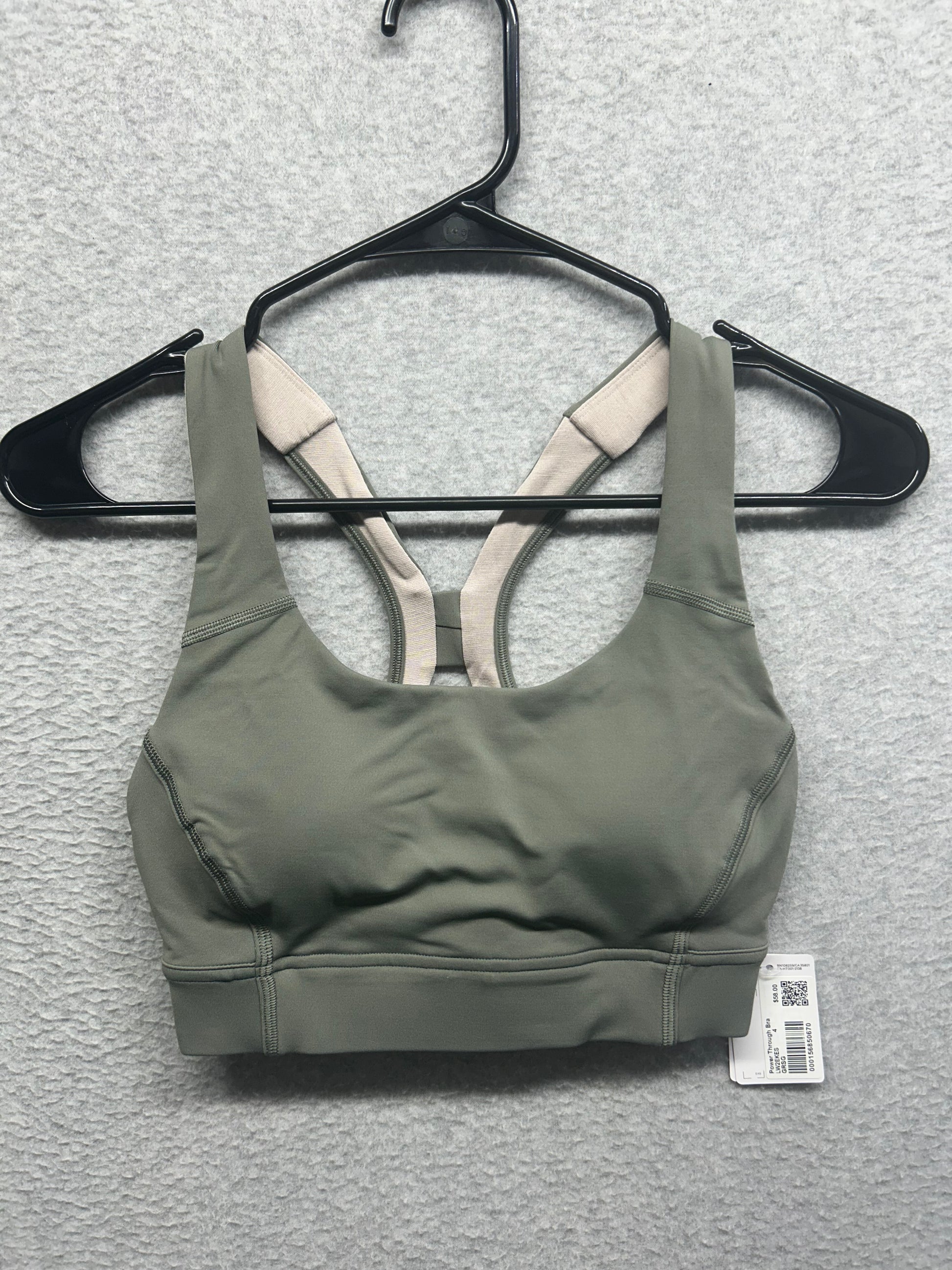 Lululemon Power Through Bra Size 4 Green Grey Sage